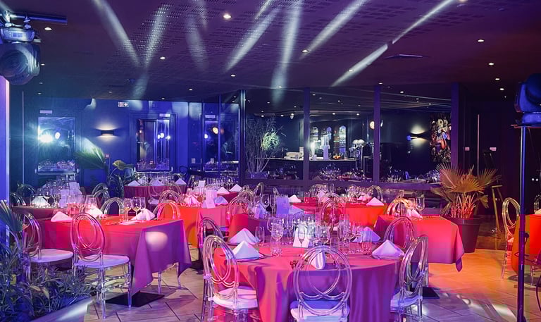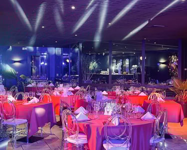Salle élégante et terrasse panoramique pour vos réceptions privées.